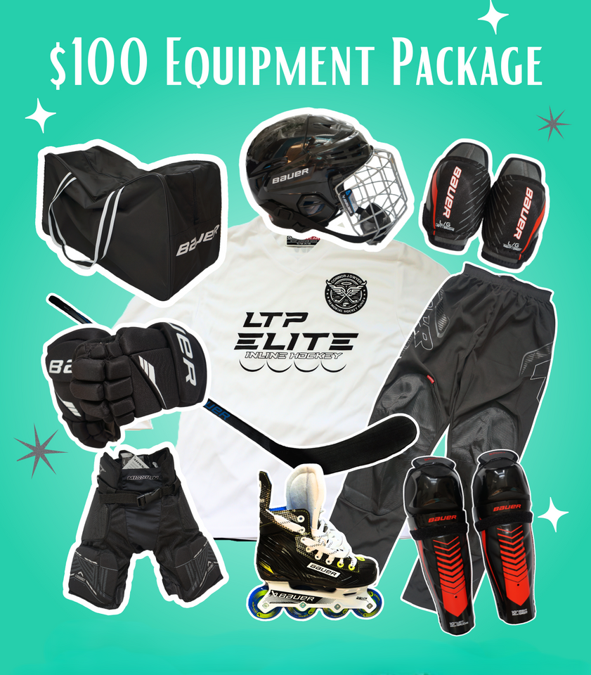 - Equipment needed: Inline skates, helmet, gloves, elbow pads, shin pads, inline girdle, pants & a hockey stick. To order our $100 equipment package, register by March 15, 2026. LTP jerseys are provided for all registered players. Please contact info@eliteinline.com for any questions regarding equipment needs.